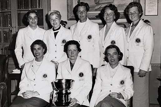Europe, but these seven women had a higher calling. They had worked to get to this place. The punishing hours they had spent beating balls and their struggles to play in the tournaments that mattered had finally paid off. Charming but hugely competitive, they went to England to win, and when we remember their matches, their antics and their encounters with some of the great historical figures of their time – it was perhaps the most compelling Curtis Cup trip of all.