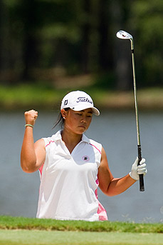On the par-4 fourth hole, Kang chipped in from a greenside bunker for birdie. It was a