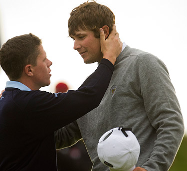 These guys, they played so hard, and with so much heart, the captain said. To see Harris English and watch him play and be so calm and to watch everybody else in this group be so calm, I mean, Russell and Jordan went out and got two points on the board real quick and everybody got pretty pumped up about that and I passed that along. Peter obviously made a great come back on his match.