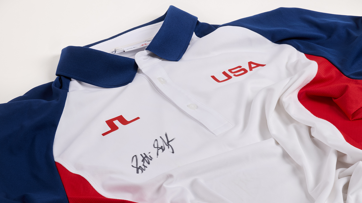 DeChambeau had honored his fellow SMU alum throughout much of his amateur and early professional career by wearing a Stewart-inspired flat cap, two of which are included in the Museum’s collection. This hat worn during the U.S. Open’s final round features the logo of DeChambeau’s LIV Golf team, the Crushers, and his autograph, which the ambidextrous star signed left-handed and backwards.