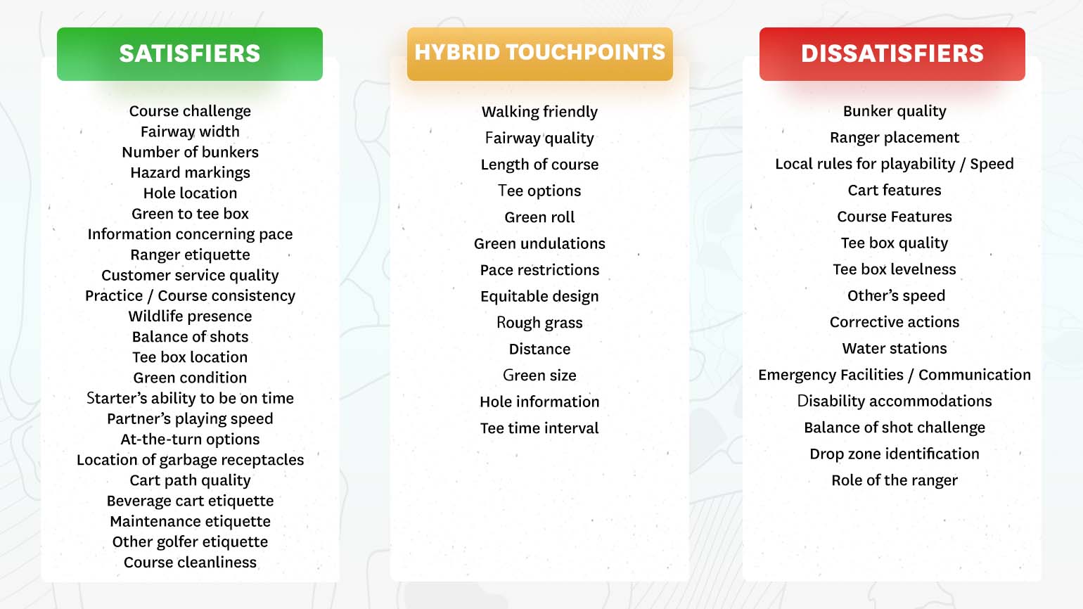 Player and Veteran: Golfers are classified into these groups because of their high skill level. These are the best golfers with the only difference separating these segments being age. Player golfers are younger than 50. Veteran golfers are 50 or older and have strong desires to preserve the norms of the game and the integrity of classic courses.