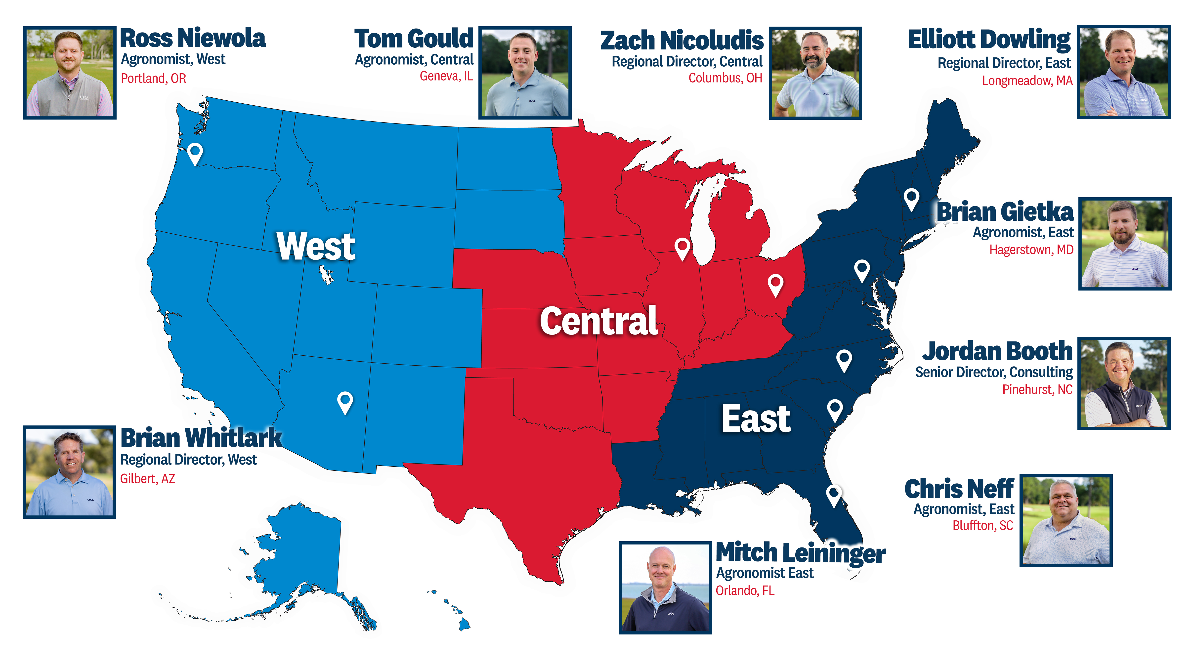 Based in Pinehurst, North Carolina, Dr. Jordan Booth leads the course consulting service and conducts consulting visits in North Carolina. Dr. Booth is a graduate of Clemson University where he earned a bachelor’s degree in turfgrass management. Following a career as a certified golf course superintendent, Jordan worked in research and extension at Virginia Tech, where he also earned his master’s and doctoral degrees in plant pathology, physiology and weed science.