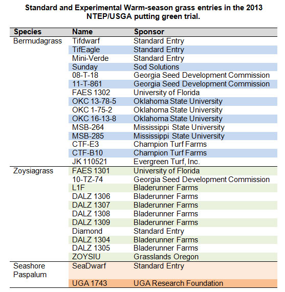 green trial for warm-season grasses. The trial, which includes bermudagrass,
