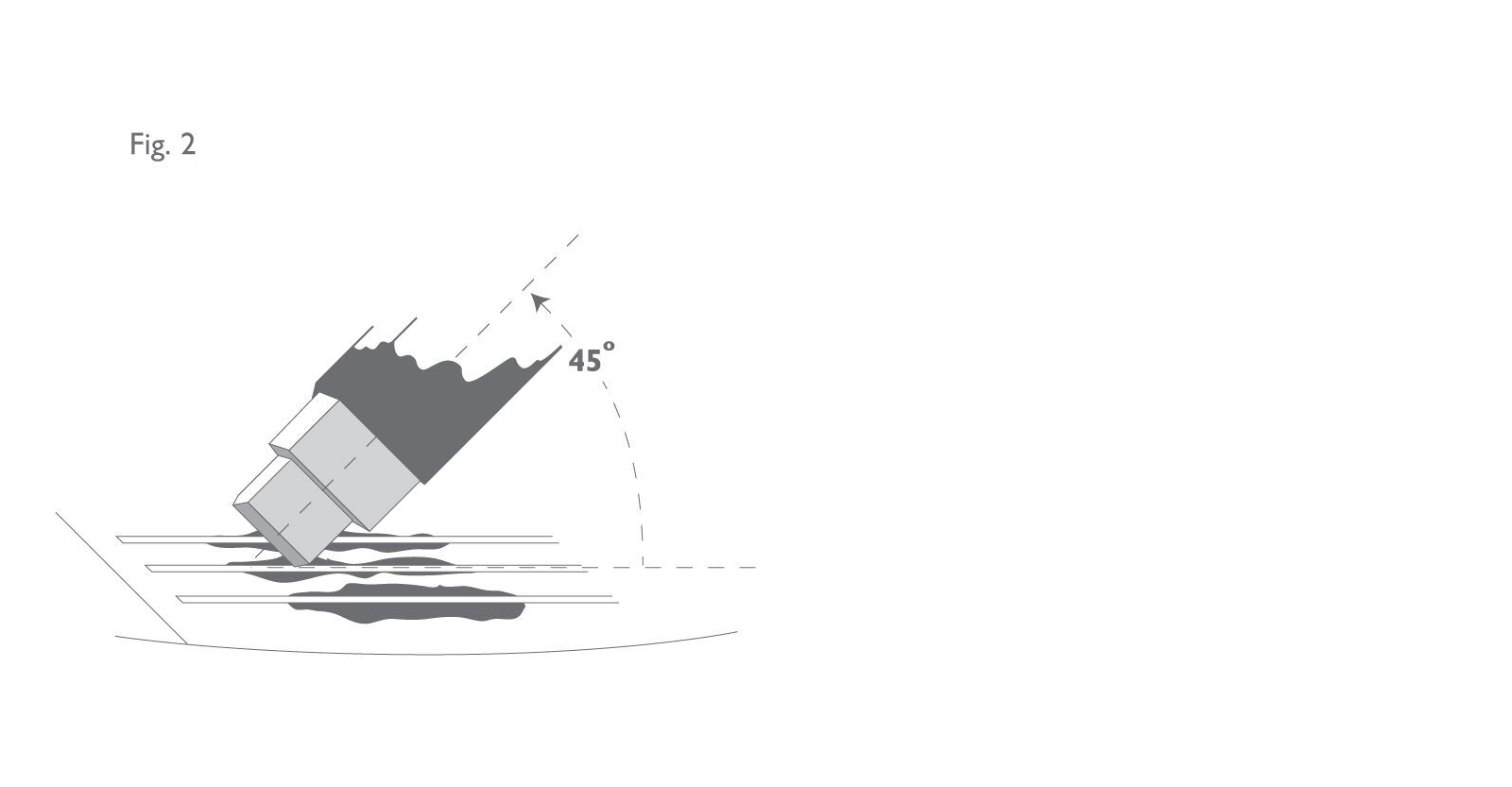 3. When the ink is dry take the marking tool, hold it like a pencil at about 45° to the club face and insert the pointed corner of its tip into one of the blackened grooves. (See Figure 2 below) Using firm but not too heavy pressure, pull the tool along the groove for about 0.25” (5 mm). Two narrow bright lines of exposed metal should now be visible, one on each side of the groove denoting the position of the edges of the grooves. (See Figure 3).