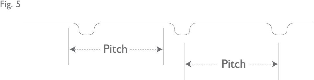 8. Determine the pitch of the grooves – the distance from a specific point on a groove to the same on the next groove, for example centre to centre, or left edge to left edge (See Figure 5).