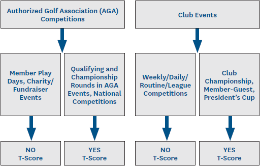 A "tournament score" (T-Score) is a score made in a competition organized and conducted by the Committee in charge of the competition. The competition must identify a winner(s) based on a stipulated round(s), and must be played under the Rules of Golf.