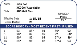 When changing golf clubs, a player should give the new club a record of the last 20 scores in chronological order plus any eligible tournament scores recorded with the appropriate USGA Course Rating and Slope Rating. This information will become part of the player's scoring record at the new club and in general will not result in a Handicap Index until after the next handicap revision. The player must also have at least five scores in the scoring record. If the player's scoring record is unavailable, the player has no Handicap Index until five scores have been posted and a handicap revision passes. The Handicap Committee can issue a modified Handicap Index in the interim period if at least five scores exist in the scoring record. (See Section 3-1 and 8-2h .)