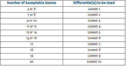 Step 1: Use the table below to determine the number of Handicap Differentials to use: