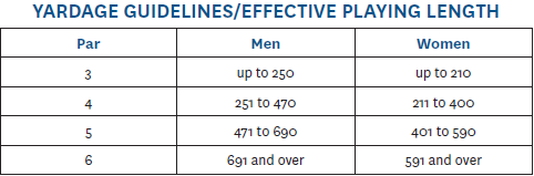 Yardages for guidance in computing par are given below. The effective playing length of a hole for the scratch golfer determines par. (See Section 13-3b.) These yardages may not be applied arbitrarily; the configuration of the ground and the severity of the obstacles should be taken into consideration.