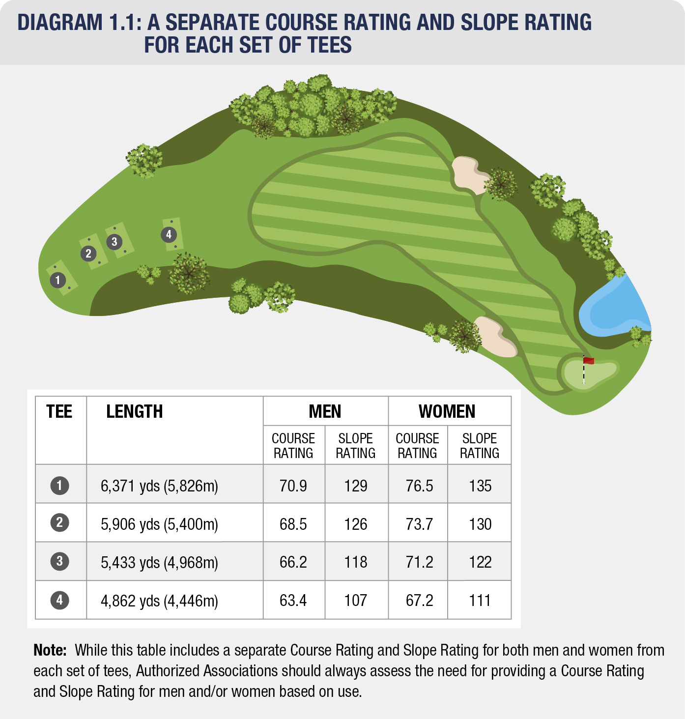 - Establishing Course Ratings and Slope Ratings for each set of tees, based on length and playing difficulty (see Diagram 1.1).