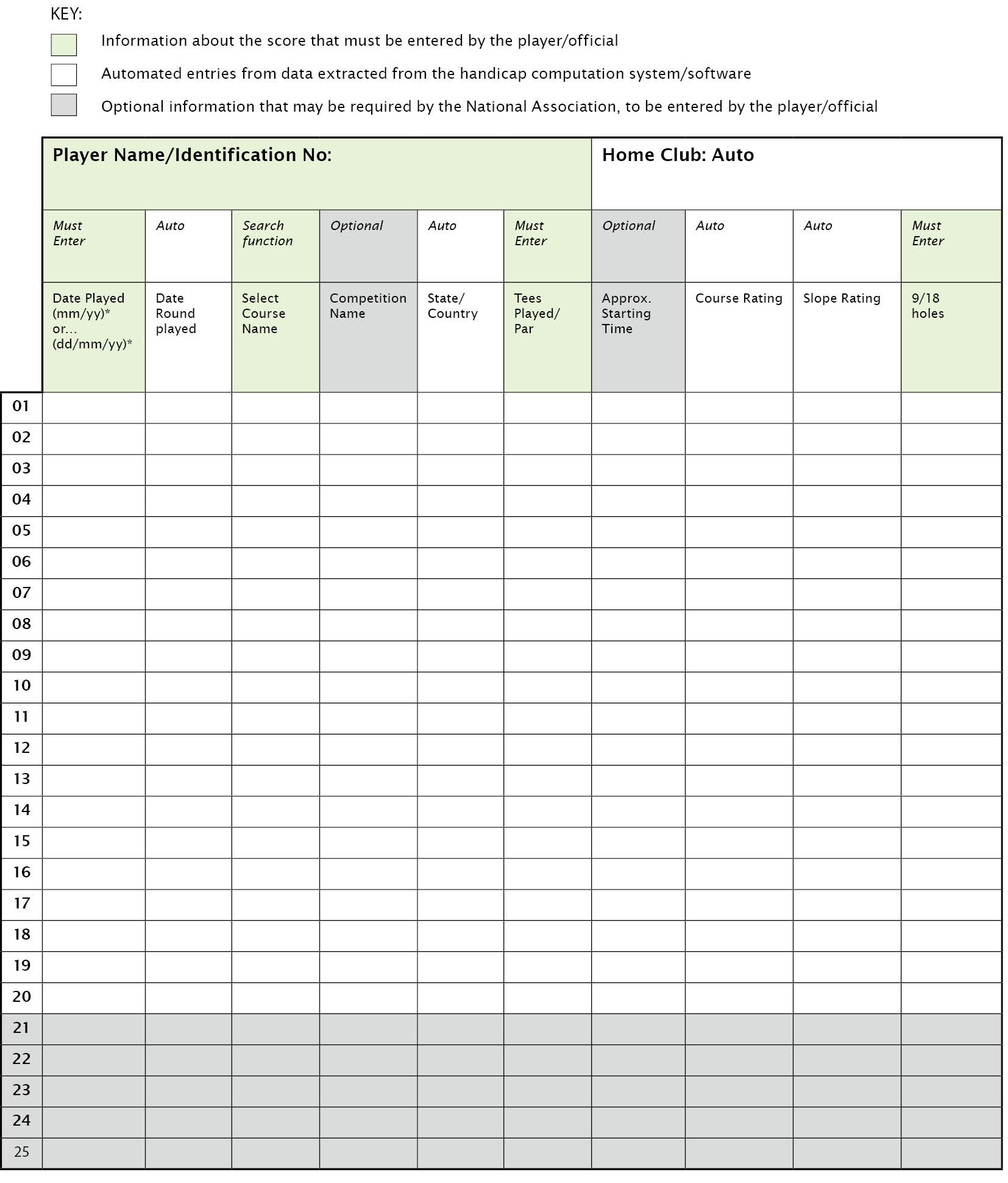 5. **If required, score type designation(s) should be determined by the Authorized Association and can be used to help identify the format of play, where a round was played and other details about the round. This is primarily to assist with the Handicap Committee review process but can also ensure that the Rules of Handicapping are applied correctly.